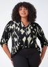 Roman Black Curve Abstract Print V-Neck Jersey Top