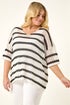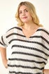 Curve Crochet Knitted Top from Roman. Stay cool and chic this Spring Summer in this Curve crochet knit top. Featuring a flattering v-neckline and short sleeves, this top is cut from a mix of comfortable knitted fabrics with beautiful crochet stripe detailing. The jumper shape adds a casual vibe to this stylish piece. Pair with wide-leg jeans for a complete look that effortlessly combines comfort and style!