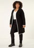 Curve Longline Knit Cardigan from Roman. Add a touch of sophistication to your Autumn/Winter wardrobe with this Curve cardigan. Crafted in a longline style, this plain cardigan with long sleeves finishes elegantly below the knee. The standout contrast colour trim on the opening adds a pop of personality to this classic piece. Simply pair with a simple t-shirt and jeans for a chic and effortless everyday look!