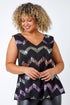 Curve Sequin Zig Zag Cami Top from Roman. Update your partywear collection with this glitzy vest top! The shimmering zig zag sequin embellishment is sure to have you dazzling on the dancefloor this party season. This Curve top features a feminine v-neckline, sleeveless silhouette and a plain woven back. Lining at the front ensures you are comfortable and covered all night long. Get special occasion ready by pairing with our matching kimono (20140808) and faux leather trousers!