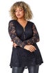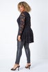 Curve Zip Front Lace Stretch Top from Roman. Look lavishing in lovely lace this season with this Curve lace top. Cut from a comfortable stretch jersey fabric this top features a feminine v-neckline trimmed with a functional tasselled zip fastening and sheer, full-length sleeves. Designed in a flattering swing shape this top is designed to pull on overhead, perfect for those last-minute party plans. Pair with leather trousers and heels to complete the look!