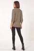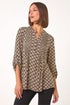 Diamond Print Pintuck Pleat Shirt from Roman. Introduce a touch of sophistication to your Autumn/Winter wardrobe with this diamond print pintuck shirt. Featuring a unique notch neck design and intricate pintuck detailing, this shirt exudes elegance. The tab fastening on the 3/4 sleeves adds a stylish finish. Crafted from a soft viscose elastane fabric, this shirt offers both comfort and style. Pair with jeggings and ankle boots for a chic and versatile look.