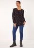 Learn moreDitsy Floral Print Ladder Trim Top from Roman. Elevate your Autumn wardrobe with this chic ladder trim print top. Featuring a flattering v-neck with a tie neck detail and keyhole, this top is made for making a statement. The elasticated cuffs add a touch of elegance to the long sleeves, while the ladder trim on the yoke adds a unique touch. In a swing shape and falling below the hip, this top is both stylish and comfortable. Pair with jeggings and ankle boots for a fashion-forward look!