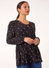 Roman Black Ditsy Floral Print Ladder Trim Top