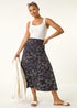 Roman Black Ditsy Floral Stretch Elastic Waist Midi Skirt