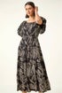 Roman Black Dotted Leaf Print Midi Dress