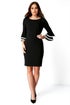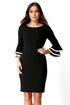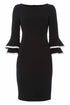 Double Fluted 3/4 Length Sleeve Shift Dress from Roman. Stride into the boardroom with confidence in this chic little black dress. Featuring a double fluted cuff detail with contrasting binding, this dress is fully lined and fastened with a concealed zip. This dress will take you from desk to dinner in style, finishing at a demure knee length.