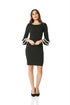 Roman Black Double Fluted 3/4 Length Sleeve Shift Dress