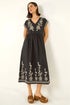 Roman Black Embroidered V-Neck Midi Dress