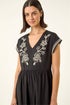 Embroidered V-Neck Midi Dress from Roman. Create a boho-chic vibe in this stunning v-neck embroidery midi dress. Crafted from a comfortable cotton woven fabric, this dress features a flattering elasticated waist and stylish grown-on sleeves. The intricate embroidery adds a touch of artistry to the overall look. Ideal for Spring and Summer, pair with a denim jacket and wedged heels for a perfect sunny day outfit!