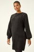 Faux Pearl Embellished Knit Dress from Roman. Elevate your Autumn/Winter wardrobe with this stunning pearl beaded detail knit dress. Designed with elegance in mind, this dress features intricate pearl embellishments that add a touch of glamour. Cut with long sleeves and a classic round neck, this knee-length dress is perfect for both daytime and evening occasions. Pair it with tights and ankle boots for a chic and sophisticated look that will make you stand out from the crowd!