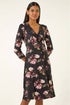 Floral Gathered Stretch Dress from Roman. Embrace the floral trend with this stunning gather dress, perfect for Autumn/Winter days. This dress features a flattering v-neck, a fit and flare shape that accentuates your figure, and elegant 3/4 length sleeves. The gathered details add a touch of sophistication, making it a versatile piece for any occasion. Pair with tights and heeled boots for a chic and stylish look that will take you from day to night effortlessly.