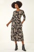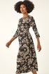 Roman Black Floral Pocket Stretch Midi Dress