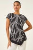 Roman Black Floral Print Asymmetric Stretch Top