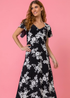 Roman Black Floral Print Back Detail Maxi Dress