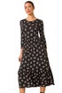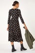 Roman Black Floral Print Frill Hem Stretch Midi Dress