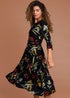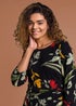 Floral Print Gathered Waist Dress from Roman. This dress is the epitome of autumn dressing with its sophisticated midi length and bold leaf print in seasonal hues. Ideal for any occasion, this stretch jersey dress has gathering in the middle to cinch in your waist and a flattering a-line skirt. Style this with a wine blazer jacket and heels for a work to evening outfit that will be sure to turn heads.