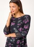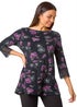 Learn moreFloral Print Lace Detail Stretch Top from Roman. Feel fabulous in florals this season with our striking printed top! Cut from a comfortable stretch jersey fabric, this piece features a round neckline and playful 3/4 length sleeves complete with intricate lace cuffs. A floral print adorns the piece, injecting dark florals to your everyday style with ease. Pair with jeans for a trendy daytime look.