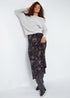 Roman Black Floral Print Midi Elastic Waist Stretch Skirt