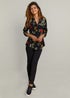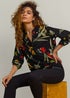 Floral Print Notch Neck Top from Roman. This floral print top is key for this season, met with complimentary autumnal hues this sophisticated top is ideal for any occasion. Featuring a notch neckline button down, with 3/4 length tab sleeves and rounded hemline. Style with a blazer jacket and heels for a dinner date or paired with denim jeans and sneakers for a stylish on the go look!