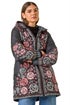 Roman Black Floral Print Quilted Hooded Coat