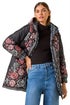 Floral Print Quilted Hooded Coat from Roman. Prepare to stand out in style with this essential floral print quilted coat. Featuring a delicate floral print, this cosy coat comes with side pockets, a practical funnel neck with a hood, and an exposed zip fastening for convenience. Keep warm and snug with the elasticated cuffs and full lining, making this coat stylish and functional. Layer over your favourite knitwear and jeans for a trendy look this season!