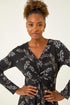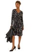 Floral Print Twist Front Midi Dress from Roman. Feel fabulous in this floral print midi dress this Autumn Winter. Designed with a trendy v-neckline, 3/4 sleeves, and a flattering twist front detail, this dress is sure to turn heads. Cut from a smooth stretch fabric with a charming floral print, it falls gracefully at midi length. Pair it with a denim jacket and ankle boots for a stunning fall look that's perfect for any occasion!