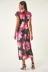 Roman Black Floral Printed Wrap Detail Midi Dress