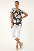 Floral Puff Print Stretch Top from Roman. Add a touch of floral flair to your wardrobe with this puff print top. Featuring a blooming floral print on a soft stretch jersey fabric, this top boasts a collar detail and flattering short sleeves. Finishing in a tunic shape, this top is perfect for pairing with a denim jacket and jeggings for a complete casual look.