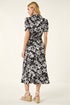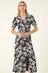 Roman Black Floral Shirred Collared Midi Dress