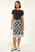 Floral Star A-Line Skirt from Roman. Bring a touch of starry flair to your Spring/Summer wardrobe with this charming A-Line skirt. Featuring a mono star floral print, this jersey skirt boasts an elasticated waist for all day comfort and a contrasting border print hem. The midi length offers a flattering silhouette while the delicate floral design adds a whimsical touch. Pair with a chic cami top and sandals for a stylish ensemble that's perfect for sunny days and strolls along the beach!
