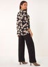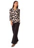 Roman Black Floral V-Neck Pleat Front Stretch Top