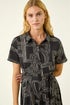 Roman Black Geo Linear Print Shirt Midi Dress