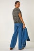 Roman Black Geometric Ikat Print Bubble Hem Top