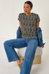 Learn moreGeometric Ikat Print Bubble Hem Top from Roman. Update your Spring/Summer wardrobe with this stylish bubble hem top featuring an all over ikat geometric print. The short sleeves and round neckline offer a comfortable fit, while the textured stretch jersey fabric ensures a flattering silhouette. The elasticated bubble hem adds a touch of fun to the top, making it a versatile piece for any casual occasion. Pair with jeans and sandals for an effortlessly chic look this season!