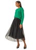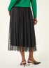 Geometric Mesh Overlay Skirt from Roman. Elevate your evening attire with this chic geo mesh overlay skirt. Featuring a geometric mesh design, this skirt is both stylish and sophisticated. The comfortable elasticated waist ensures a perfect fit, while the fully lined interior adds a touch of luxury. Pair with a classic shirt, tights, and heels for a polished look that's perfect for any special occasion.