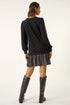 Geometric Mix Print Mini Dress from Roman. Add a playful pop of print to your wardrobe with this geometric print mini dress. Designed with a flattering round neckline and long sleeves, this dress features a contrasting printed frill skirt that adds movement and charm. The swing silhouette offers a relaxed yet stylish fit, making it perfect for all-day comfort with a touch of flair. Falling above the knee, it's a versatile piece you can dress up or down, style with tights and ankle boots for a chic, layered Autumn look.