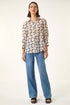 Geometric Print Collared Shirt from Roman. Add a touch of geometric flair to your Spring/Summer wardrobe with this eye-catching geo printed shirt. Featuring an all-over print, this shirt has a full opening, a classic collar, and on-trend 3/4 sleeves with a stylish gathering detail at the cuffs. Pair with your favourite jeans and trainers for a casual yet chic look that stands out.