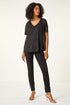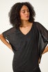 Glitter Mesh Overlay Tunic Stretch Top from Roman. Feel glamorous in our glitter mesh overlay tunic top, perfect for sparkling through the Autumn Winter season. The feminine v-neckline and short sleeves make this top a flattering choice for any occasion, finished in a trendy tunic shape that falls below the hips. Crafted from a comfortable stretch jersey fabric, this top features a dazzling glitter mesh overlay, ensuring you stand out at any event. Pair with leather pants and heeled boots for a show-stopping party look!