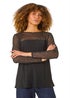Holographic Foil Mesh Sleeve Top from Roman. Shine bright this Autumn/Winter in this stunning foil sleeve top. With a comfortable jersey body and holographic spot mesh detailing on the yoke and sleeves, this top is a showstopper. Featuring a classic round neck and long sleeves, this top is perfect for adding some sparkle to your everyday wardrobe. Pair with jeans and heeled boots for a stylish look that will take you from day to night effortlessly!