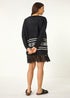 Roman Black Jacquard Fringe Hem Knit Cardigan