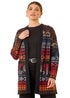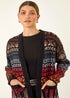 Jacquard Longline Knit Cardigan from Roman. Stay snug in style this Autumn Winter with this unique knitted cardigan. The edge opening and long sleeves provide extra warmth while the soft knitted fabric featuring a jacquard abstract design and cut in a longline shape, this cardigan is perfect for layering over your favourite blouse and jeggings, paired with ankle boots for a complete fall outfit!