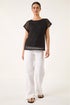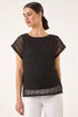 Lace Overlay Stretch Top from Roman. Get your wardrobe ready with this elegant lace overlay top. The delicate lace detailing adds a touch of sophistication to this top with short sleeves. Designed with a round neckline and cut from a comfortable woven fabric, perfect for effortless styling. Pair it with a denim jacket and jeggings for a complete and stylish look!