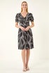 Roman Black Leaf Print Gathered Midi Dress