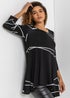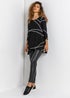 Linear Print Hanky Hem Top from Roman. Smart casual has never been easier at Roman with our classic shaped hanky hem top. Cut to a favourite silhouette and with a simple and stylish all over linear print, this round necked top has 3/4 length sleeves and has a beautiful asymmetric hem to flatter your figure. Pair with faux leather trousers and boots for a date night ready style or add jeggings and pumps for a casual take on your everyday outfit.