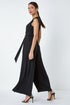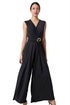 Roman Black Metallic Belt Draped Stretch Jumpsuit