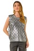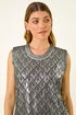 Metallic Knit Vest from Roman. Designed as a one-size piece, it offers an oversized fit for a size 10/12 while providing a more true to size fit for a size 14/16. Add a touch of sparkle to your Autumn/Winter wardrobe with this metallic knit vest. Crafted from a shimmering fabric, this crew neck vest is sleeveless, making it ideal for layering. Pair with your favourite jeans and ankle boots for a stylish and cosy look that will take you from day to night effortlessly!