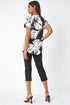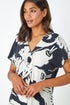 Palm Print Button Detail V-Neck Top from Roman. Be bold with prints this Spring and Summer season with our relaxed fit, palm print tee. Adorned in an oversized palm print, this v-neck top is a great way to make a statement! It features a classic short sleeve t-shirt fit, a flattering pleat front and feature button detail. Cut from a comfortable stretch jersey fabric this fun piece is a timeless addition to your holiday wardrobe. Pair this piece with our cropped stretch trousers and a simple heel for effortless evening glam!