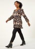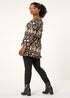 Petite Aztec Frill Hem Top from Roman. Elevate your Autumn/Winter wardrobe with this charming v-neck frill hem top. The full-length sleeves with elasticated cuffs add a touch of elegance. Designed in a flattering, flowy fit that finishes below the hips, the frill hem detail at the bottom brings a fun and stylish element to the top. Perfectly paired with jeans and ankle boots for a chic and effortless daytime look!