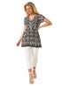 Roman Black Petite Aztec Print V-Neck Tunic Top